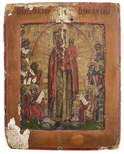 both tempera and gesso on wood panel, the earlier icon of The Burning Bush, 36 x 31 x 2.75 cm, the later icon of The Virgin and Child Flanked by Saints, 22 x 17 x 3cm
