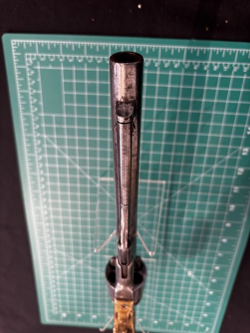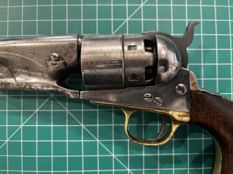 of production specifications, the barrel with New York address, the cylinder with traces of naval engagement scene and matching numbers (some old wear and rust patination, back-strap repaired): in modern lined and fitted case, 20.3 cm barrel