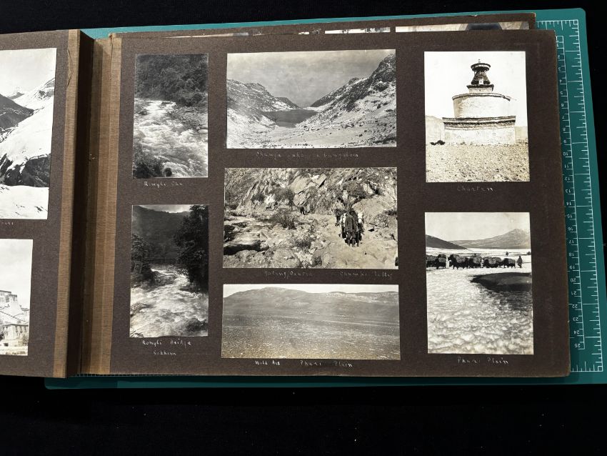 A very well presented and captioned album of photographs of Tibet taken by a British official or army officer in the 1920s. The photographs include Frank Ludlow who ran an English school in Gyantse between 1923 and 1926, and Frederick Williamson, a British Political Officer. The photographs show many images of Tibetan people, ceremonies, events, buildings and views.